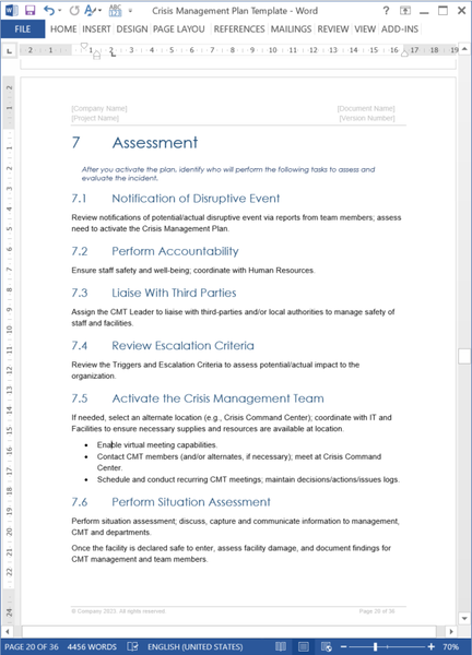 Use these Crisis Management Plan templates to develop a flexible response plan for unexpected emergency incidents. Use the MS Word and Excel spreadsheets to develop a decision-making framework to coordinate response to disruptive incidents. The...
